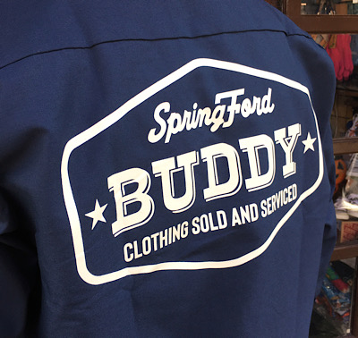 BUDDYオリジナルのプリント入りワークシャツです。