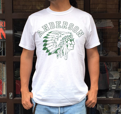 BUDDYオリジナルデザインの FRUIT OF THE LOOM ANDERSON INDIAN Tシャツ。