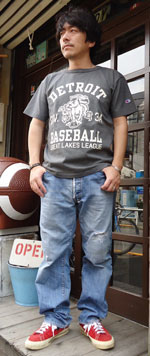 Championのアメリカ製のT1011 TシャツにBUDDY